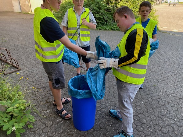 Deswegen haben wir gestern mit der ganzen Schule Müll aufgesammelt und in Müllsäcke gepackt. Dabei ist sehr viel Müll zusammengekommen.